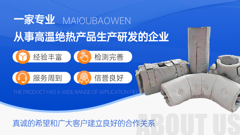 保定迈欧保温材料有限公司是一家从事高温绝热产品生产研发的企业,以可拆卸保温套、设备柔性保温套、柔性电加热保温套、石油化工管路加热系列产品、油田加热防冻系列产品、柔性防火罩、执行器防火罩、隔音降噪防护罩、特殊保温绝热项目工程为主,针对各类热电、石化、机械制造、塑料工业等工厂客户,从源头、过程、回收等环节进行节能工程的研发。